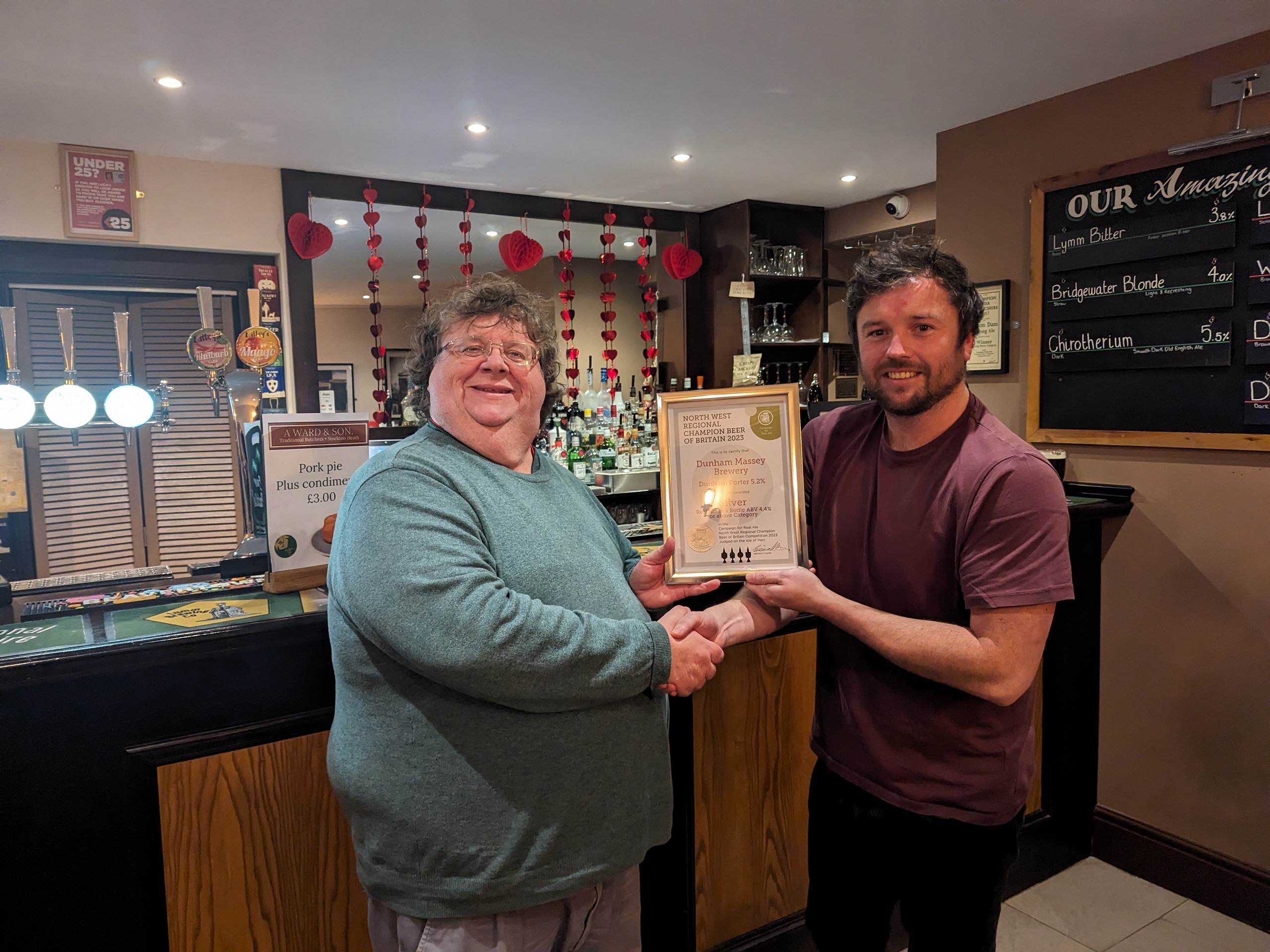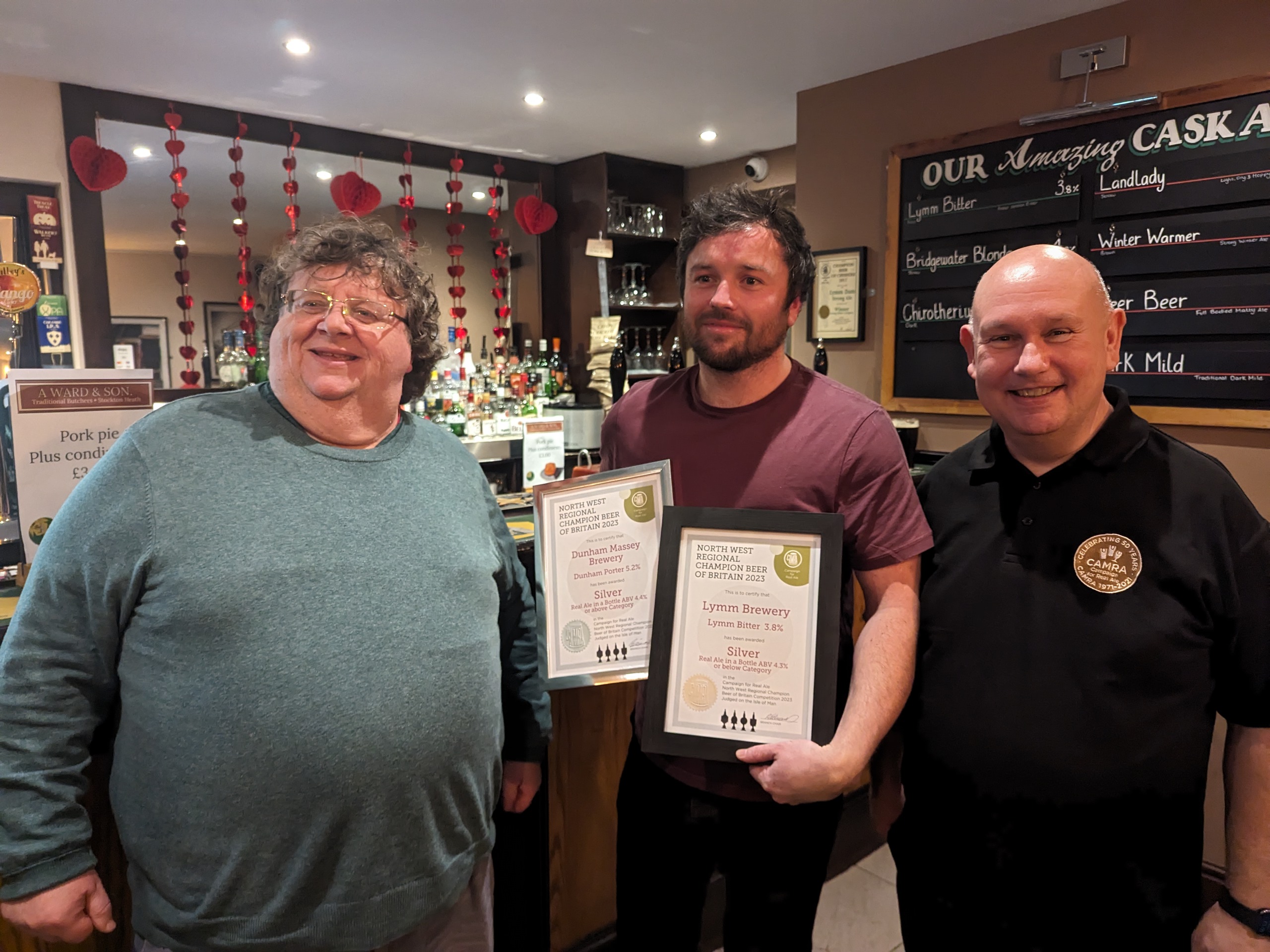 A (very) small contingent of the branch travelled to the Old Post Office in Lymm on Wednesday February 7th to join North Cheshire branch at their presentation to brewer Mark Dale of the North West Regional Silver bottled beer (4.3% and below) for Lymm Bitter.
